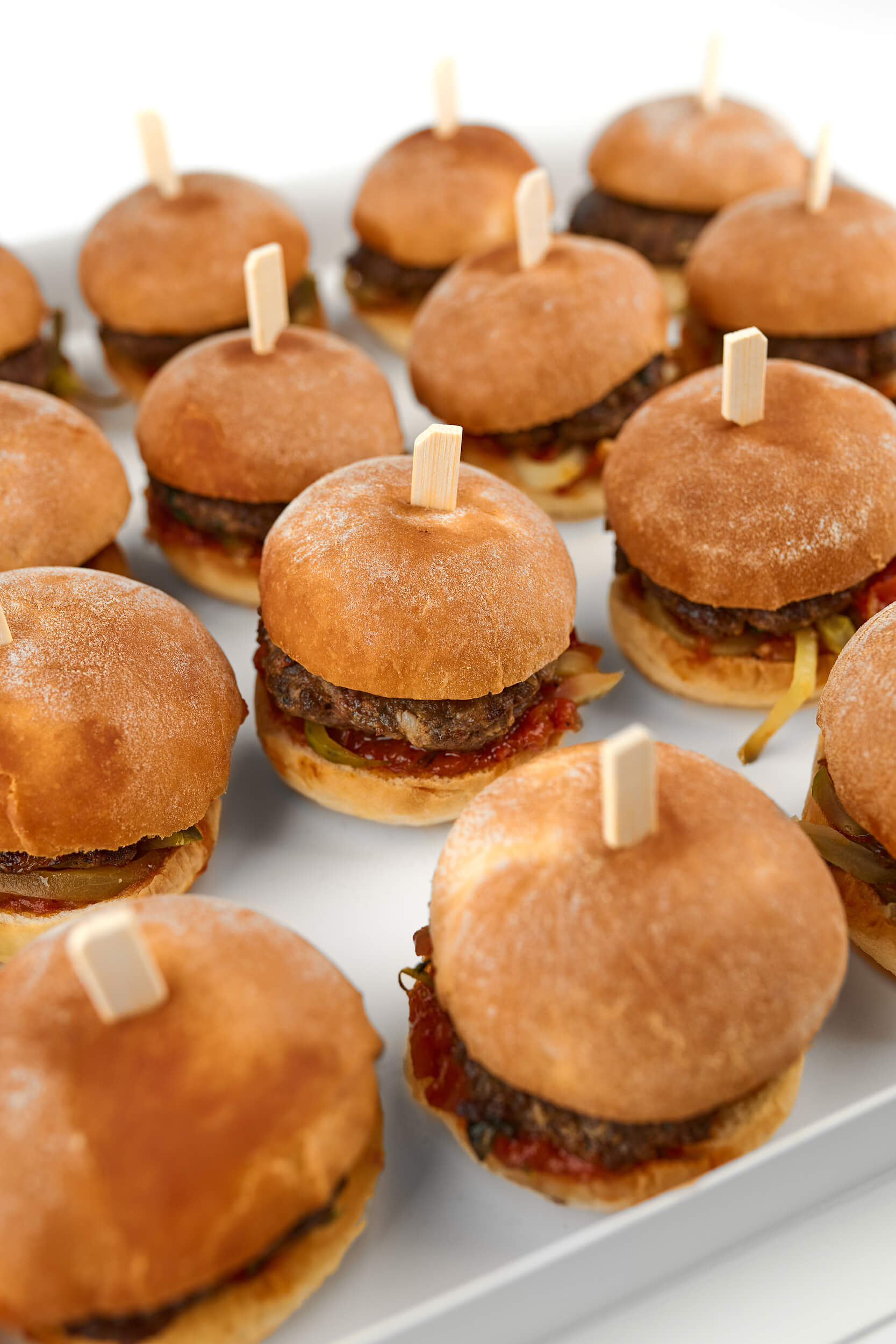 Mini burger s hovězím masem, rajčatovým chutney a nakládanými okurkami